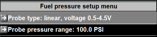 Your setup should reflect the correct Probe Type (linear, voltage, 0.5-4.5V), Correct Location, and Correct Pressure range: